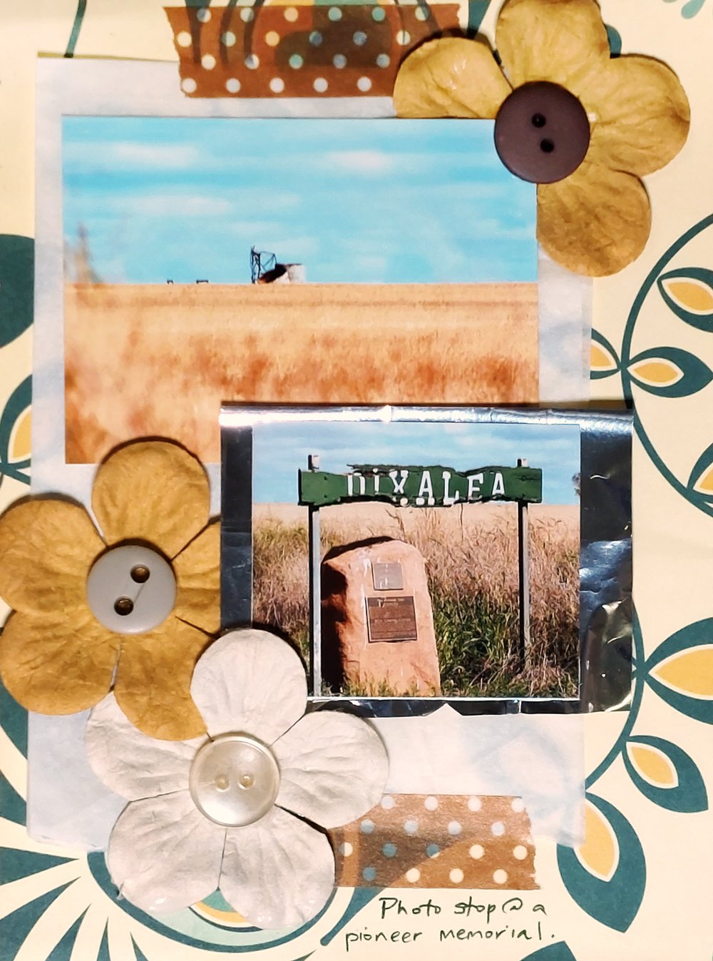 Scrapping another journal page, about a little stop on our "3 girls" road trip. Golden fields as far as we could see.